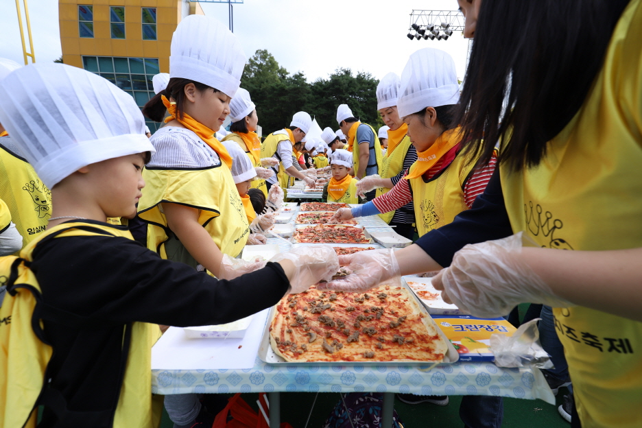 국가대표 왕 치즈피자 만들기 : 지름8mm의 대형 국가대표급 왕 치즈 피자를 만드는 요리체험 프로그램이다.